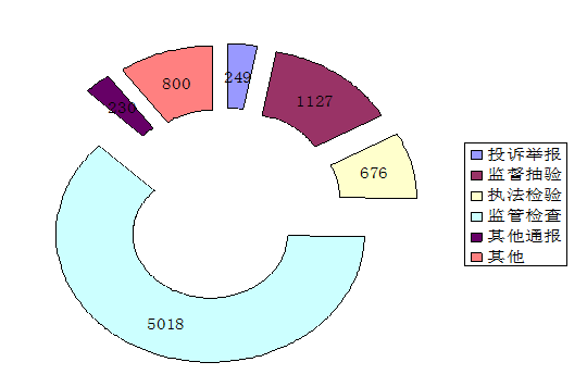 全省药品经营企业情况分布图 (五)互联网药品服务机构审批情况(详见附表22) 2016年,互联网药品信息服务受理95件,信息服务审批75件,信息服务驳回20件,交易服务受理8件,交易服务审批BTB9件,BTC3件,合计12件。 (六)麻醉、精神药品和药品类易制毒化学品生产定点和经营定点情况(详见附表23、24) 截至2016年底,全省精神药品定点生产企业9家,属于第二类精神药品生产企业,其中含原料药2家,含制剂7家。截至2016年底,全省麻醉药品和第一类精神药品定点经营企业38家,均属于区域性批发企业。第二类精神药品定点经营企业404家,其中专门从事第二类精神药品批发企业245家,药品零售连锁企业83家。 二、药品案件查处情况(详见附表25) 2016年,各级监管机构共查处违法药品案件总数8100件,涉及物品总值2553.33万元,罚款金额2154.69万元,没收金额427.3万元;取缔无证经营38户,捣毁制假售假我点5个,责令停产停业181户,吊销经营许可证40件,移交司法机关105件。 从案件来源看,投诉举报249件,监督抽验1127件,执法检验676件,日常监管和专项检查5018件,其他部门通报230件,其他800件。