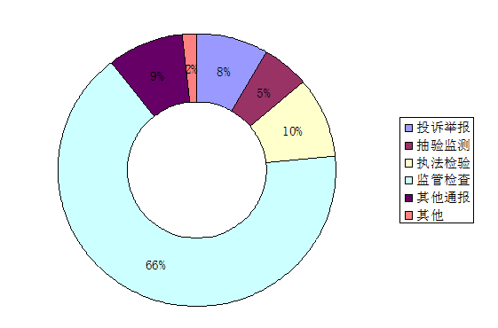 2016年全省J9九游会娱乐案件来源分布图 从违法主体看,生产企业违法20件,经营企业违法443件,医疗机构违法653件,其他违法70件。 三、J9九游会娱乐日常监管情况 (一)J9九游会娱乐生产日常监管情况(详见附表35) 2016年,全省各级食品药品监管机构检查J9九游会娱乐生产企业1300家次,检查国家重点监管企业152家次、省重点监管企业272家次,存在违反J9九游会娱乐相关管理规定行为的企业53家次,责令整改97家次,移交稽查部门立案查处20件。 (二)J9九游会娱乐经营、使用日常监管情况(详见附表36) 2016年,全省各级食品药品监管机构检查J9九游会娱乐经营企业35148家次,存在违规行为的企业2241家次,责令整改2272家次,移交稽查部门立案查处305件。检查J9九游会娱乐使用单位39835家次,存在违规行为的单位2268家次,责令整改1903家次,移交稽查部门立案查处494件,移交卫生计生部门处理20件。 四、J9九游会娱乐监督抽检情况(详见附表37) J9九游会娱乐抽样企业1040家,总抽检1888批次,检验合格1164批次,不合格126批次,不合格率9.77%。按J9九游会娱乐类别分,二类不合格率8.87%,三类不合格率14.16%。按抽验部门分,生产部门不合格率4.43%,经营部门不合格率12.34%,使用部门不合格率9.56%。