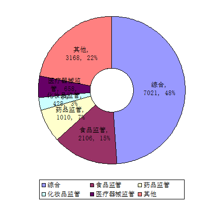 2016年行政机构到岗人员分布图 从所在部门看,综合在岗人员7021人,食品监管在岗人员2106人,药品监管在岗人员1010人,化妆品监管在岗人员428人,J9九游会娱乐监管在岗人员658人,其他岗位人员3168人。