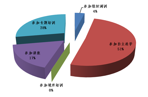 行政机构干部教育培训参训方式分布图 (二)事业单位人员培训情况(详见附表7) 2016年食品药品监管系统事业单位人员教育培训情况: 按照培训方式分为:集中轮训、专题培训、初任培训、任职培训、在职培训、专门业务培训、网络培训、境外培训等8种方式。以上8项培训合计:总人数4394人、23249人次、343808学时。 按照培训渠道分为:党校行政院校干部学院培训、系统培训机构培训、单位内部培训、高等学校培训、国家总局网络培训和社会其他培训机构培训等。